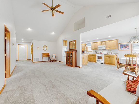 Very well maintained 2 bedroom, 2 full bath villa in Northcrest, conveniently located near schools, shopping, churches, and walking trails. The open concept living area includes vaulted ceilings in the living room, creating a bright and spacious feel. The primary bedroom features a private bath with a walk-in shower and a walk-in closet. The large eat-in kitchen offers a breakfast bar and Maple cabinetry. Additional highlights include a 2-car attached garage with attic pull-down access for extra storage. Lawn care and snow removal are handled by the homeowner's association, offering low-maintenance living!