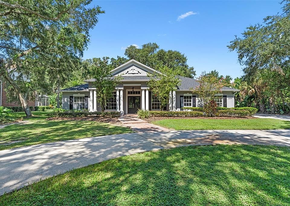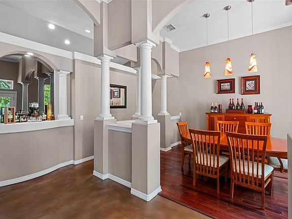 Welcome to 2304 Indian Mound Trail in Kissimmee — a graceful blend of timeless charm and tranquility, nestled within the private, gated community of Hidden Harbor. This stately Colonial-style residence, built in 2002, is set on a beautifully landscaped 1-acre lot with a circular driveway — perfect for welcoming guests with ease and sophistication. Step through the grand columned entryway into a sunlit foyer featuring decorative flooring — a stylish and durable choice that sets the tone for the home’s elegant, thoughtful layout. To the right, a formal dining room invites gatherings and special occasions, while the adjacent formal living room offers flexible use as a sitting room or home office — both spaces designed with refined architectural detail. At the heart of the home is the spacious, open-concept family room, where decorative concrete flooring continues, adding a touch of contemporary flair that beautifully complements the room’s natural light and openness. This space flows seamlessly into a chef’s kitchen that’s equally suited for everyday living or entertaining. Herringbone tile floors, granite countertops, stainless steel appliances, a generous center island, and an expansive pantry make this kitchen both functional and inspiring. The luxurious primary suite offers a serene retreat, complete with a spa-style en-suite bath featuring a garden tub, separate shower, and dual vanities. From here, enjoy convenient access to a private home gym — a unique space that supports wellness right at home. Upstairs, a versatile loft provides an additional area for relaxation, creativity, or media. On the opposite wing of the residence, four additional generously sized bedrooms and two full bathrooms provide a thoughtful layout with comfort and privacy in mind. Outdoors, the expansive backyard is a true extension of the living space — ideal for enjoying the Florida sunshine, dining al fresco, or relaxing beneath mature trees. Residents of Hidden Harbor enjoy access to private community amenities, including tennis courts and a fishing dock on scenic Lake Tohopekaliga — all within minutes of Central Florida’s renowned attractions, recreation, and dining. 2304 Indian Mound Trail is more than a home — it’s a place where everyday living meets elevated design, where thoughtful spaces invite connection, and where comfort and elegance come together in perfect balance.