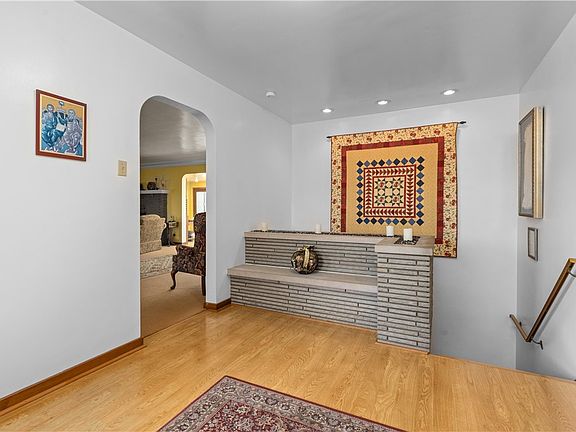 Open layout allows natural sky light to fill the interior. Warm color palette & Berber wall to wall carpet create a cozy & inviting atmosphere. Gas fireplaces on main & lower levels add to the overall comfort & ambiance. This home was made for food for fifty gatherings. Design details such as wood cabinetry, crown moldings, cedar closet, Carrera glass tiles. curved wood bar, arched entries enhance this mid-century modern ranch. The kitchen is equipped with abundant cabinetry providing excellent storage & organization. the primary bedrm is complete with ensuite bath and 2 walk in closets. the vaulted window ceiling in the back great room adds to the sense of volume. The garage is tandem for 2 vehicles.