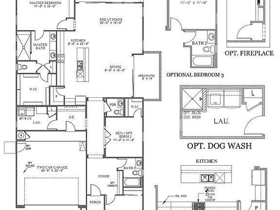Spacious single level, 2/3 bedrooms, den, and 2.5 bathrooms.. Features include mudroom with hooks at owners entry, dining room with view to open patio. Great room opens to kitchen, dining area and view of covered patio. Options include side garage door, cabinets in foyer, a fireplace, an additional bedroom, a dogwash station, and upgraded kitchen layout with double oven and cooktop.Take a Tour Here! *Representative video. Actual home, options and selection vary per community and per city. See sales professional for details.