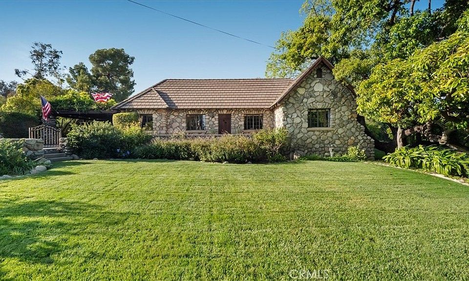 Be prepared to be delighted and charmed by this storied stone estate. It is approximately 4,182 square feet under roofline. The field stone walls & wrought iron gates set the stage for a place where time slows, nature sings & everyday life unfolds like a chapter from a beloved novel. Situated on nearly 2 acres of flat land that allows for an ADU, large scale garages, or equestrian facilities. The land is so expansive and ready for the new buyer to create their dream estate. The yard boasts an orchard of heritage trees, including avocado, lemon, orange & grapefruit, native gardens & historic architecture, this one of a kind home offers both a rare connection to the past & an inspiring lifestyle for the present. Originally built in 1931 by local businessman, Jack Davis during the Great Depression, the home's construction was a labor of love. Over the decades, only four owners have stewarded this estate, each preserving the integrity while gently enhancing it with modern comforts. The heart of the home is a welcoming kitchen with handcrafted Pelletier cabinetry & granite counters, an inviting space where you can gather, not just to prepare meals, but to linger & enjoy views of the gardens. The family room has been updated & enhanced by renowned Hartman Baldwin, Design Build, & is adjacent to the kitchen, offering an opportunity for an ample gathering space. The living & dining rooms exude charm. The hardwood floors gleam in the sunlight. There are beamed ceilings that offer height & substance to the rooms. The primary suite was created in 1993 by Roy F. Kroll & Associates, a Design Build firm in Claremont. They were able to infuse the desire for a modern space, without disrupting the charm of the original structure. During this addition, they added a loft, perfect for a home office. The additional bedrooms are roomy & all have a view of the gorgeous grounds. Outside you will find a thoughtfully designed patio area with a waterfall that enhances the tranquility of the space. This is the perfect place to savor a cup of coffee or enjoy glass of wine. As you exit the home you will find an exciting addition of useable space in the laundry/wet room & the artist studio, as well as the workshop. Above all, this property is a haven for nature lovers. Whether you are entertaining, painting in the studio, harvesting citrus or just enjoying the warm sunny days, life here is measured in moments, memories and meaning. This is more than a home. It's a lifestyle.