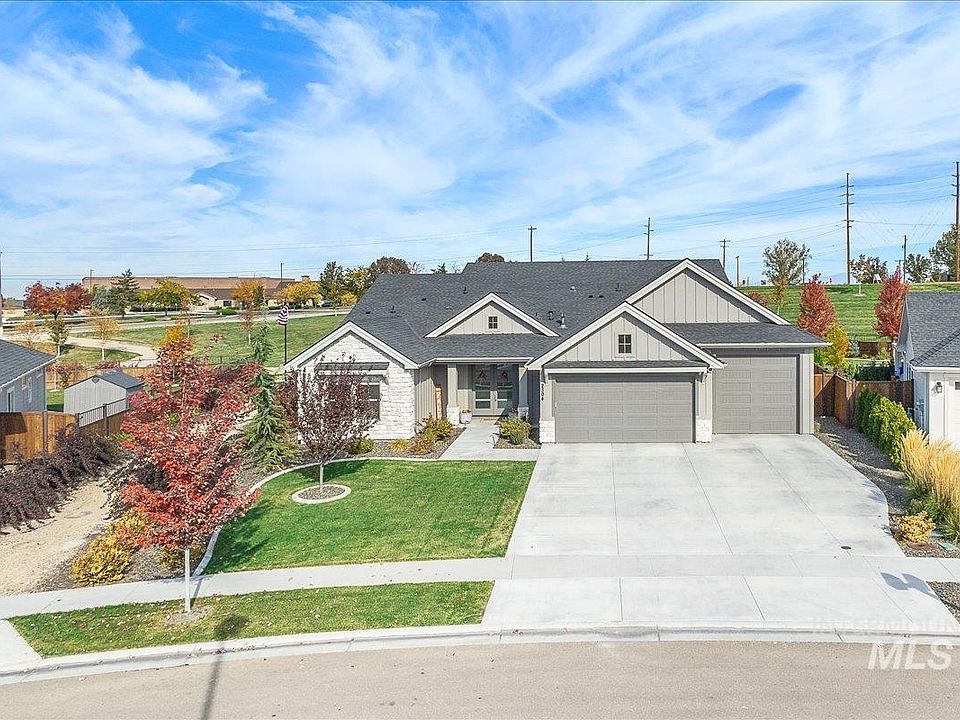 Nestled on nearly 1/3 of an acre private lot, this beautiful single-level home offers the perfect blend of comfort and functionality. Featuring 3 bedrooms, 2.5 baths, and a generous bonus room—ideal for a home office, media space, or craft room. The open layout is designed for easy living and entertaining, with thoughtful finishes throughout. The kitchen features cabinets to the ceiling, coffee area with beverage fridge, and a large pantry. Gather in the heart of the home with a 10' kitchen island and eating area with enough room for large dining table. Ceiling accents, huge picture windows, and a 41' wide covered patio. Car enthusiasts and hobbyists will love the 4-car garage with an epoxy floor and dedicated boat bay with 10' door, providing ample space for all your toys and storage needs. Enjoy the peace and privacy of a beautifully landscaped large lot while still being conveniently close to amenities. Summit Ridge features a community pool, playground, bocce ball court and walking paths. This home is only 3 years old and has been very well taken care of!