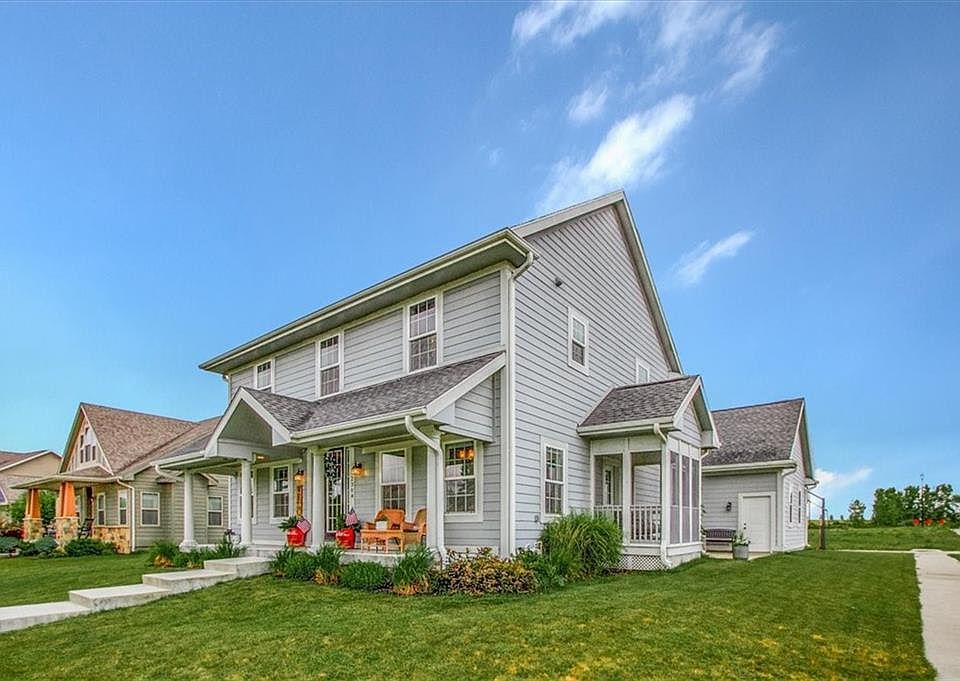 Gorgeous details surround you in this luxury CUSTOM built Colonial home! Solid 1' Amish laid WALNUT floors and beam create a warm and inviting space throughout the first floor! Enjoy your coffee on the screened in deck or the covered front porch! Main level features 9' ceilings, kitchen w/ expansive granite island & seating, walk-in pantry, custom ivory cabinetry w/ lighting, and copper sink! Dedicated office space with shiplap & walnut barn door. Formal dining room gives you the space to host your guests or enjoy family dinners! Upstairs, master retreat is complete with tray ceiling & tile shower. Two additional bedrooms feature vaulted ceilings and a much loved LOFT area in each! Finished basement holds the 4th bedroom and 5th bed or exercise room! Lower level rec room with projector/screen perfect for movie night. Garage is heated. This home features all the Prairie Trail charm you love, walking distance to elementary, Dean park, the District, and Cascade Falls pool!