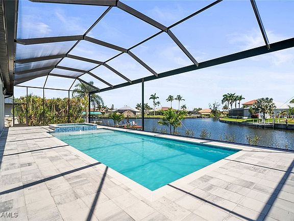 Brand-new modern gulf access home with desirable southern rear exposure and an awesome view over the intersecting canal. This home features 3 bedrooms, a large den and 3 bathrooms, a beautiful kitchen with center island and a dining area with large windows overlooking the canal intersection. The 10 ft. Zero Corner sliders open up to the lanai (storm protected by electric roll down shutters) and over sized pool deck featuring a large pool, spa and sun-shelf for year-round enjoyment. This home fits perfectly as a permanent residence as well as a second home or a successful vacation rental.