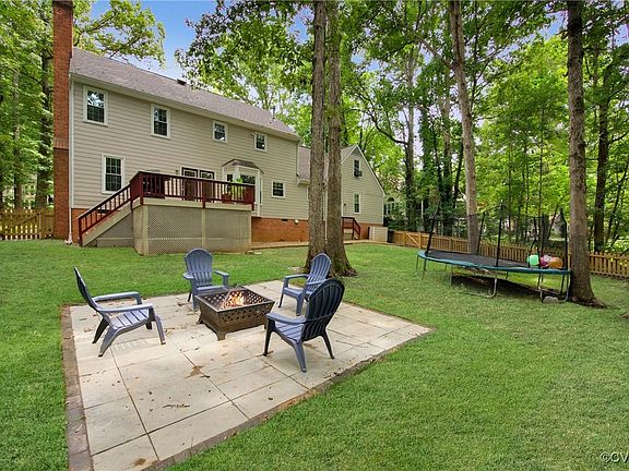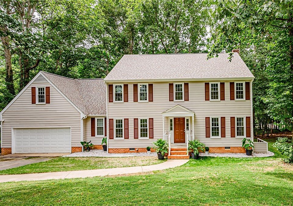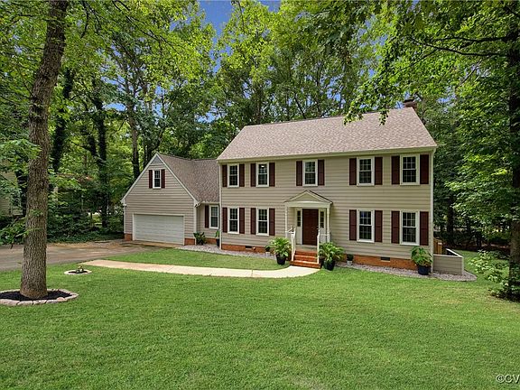 Beautiful spacious colonial on cul-de-sac in sought after Brandermill. NEW ROOF (2022), WINDOWS (2023) & FENCE (2023)! Bright kitchen features wood cabinetry, tile floors, breakfast nook, open to family room and perfect for entertaining. Hardwoods in dining, foyer and formal living room. Neutral paint colors throughout the home. Large paved driveway with plenty of room for parking. Cozy up to a warm wood burning fireplace in the family room. Plenty of space for entertaining outdoors on the large porch and newly installed firepit area. Natural gas heat and water heater with potential for natural gas cooking if you prefer. Tons of storage in the oversized 2 car garage, recently insulated and ready for drywall. Finished room over garage can be used for a 5th bedroom, office, playroom, the possibilities are endless. Brandermill offers something for everyone with 15 miles of walking trails, 3 pools all included with your HOA, access to the 1700 acre Swift Creek Reservoir, boating, fishing, playgrounds, beautiful sunsets, Sunday Park pavilion, community events and much more. Conveniently located near shopping, schools, restaurants, 288, 76, Hull St & Midlothian Turnpike. Move in ready and waiting for it's new owner.