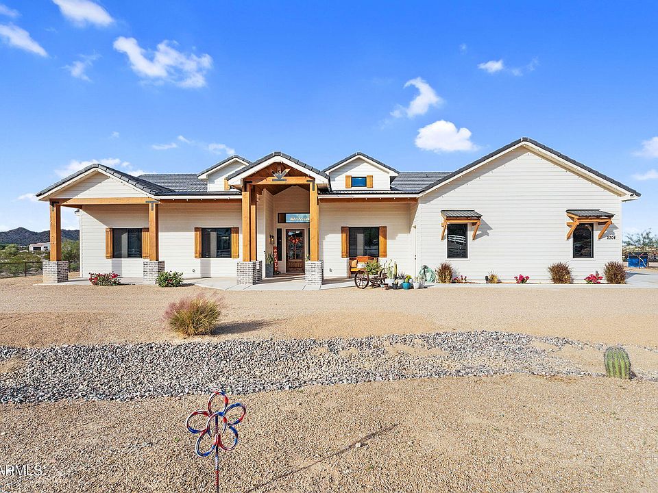 This impressive 4 bedroom, 3 bath Luxury horse property sits on a large 3.3 acre lot with low maintenance landscaping and majestic mountain views. The open floor plan features 12' ceilings and a custom designed kitchen with an extra large island with seating for 8. A dedicated billiard room adds versatile space for relaxation or entertainment. The primary suite offers dual sinks, a walk in closet, and a step in shower. Additional highlights include a large laundry room with a built in sink with garbage disposal. Outside, fenced property includes a robust barn and a lighted horse arena, creating an ideal setup for equestrian use or additional outdoor needs. This property delivers exceptional appeal and outstanding amenities. See photos for additional amenities.