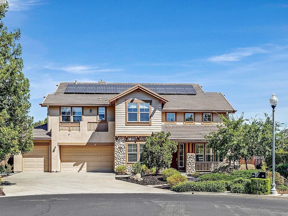 Wonderful wine country home in Livermore's favorite neighborhood features a spacious guest quarters attached to the home! A charming covered porch welcomes you to this 6 bedroom plus den floorplan beautifully appointed throughout. Volume ceilings at the entry afford lots of natural sunlight to formal living room and dining room! Generous space in the kitchen-family room area with a wall of windows looking out to private yard backing to neighborhood greenbelt. Center island with quartzite counter enhances this chef’s kitchen, along with a walk-in pantry and abundant cabinet and counter space! Family room boasts gas burning fireplace and built in media center and under the stair closet suitable for wine storage. Upstairs there are 4 bedrooms plus primary suite with gas fireplace and huge walk-in closet with custom built storage. Secondary bedrooms are spacious – two have a shared bath, one with ensuite bath. Beautifully landscaped yards with multiple spaces to enjoy incl large covered patio, firepit area, raised garden beds, and large grass lawn areas. Great schools, a bustling downtown of theaters, restaurants and shops, golf venues and wineries just a short drive! There is more to do in Livermore!