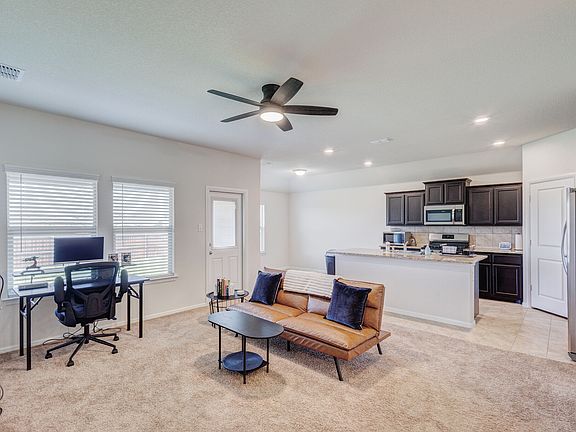 Available for move-in around September 29th, this beautiful home is located in a vibrant community that offers a pool, cabana, and playground. The open-concept floor plan features a spacious living, dining, and kitchen area with granite countertops, a tiled backsplash, breakfast bar, gas range, and walk-in pantry, along with plenty of cabinet space. The split-bedroom layout provides privacy, with a large primary suite that includes an ensuite bath and walk-in closet. Additional highlights include covered back patio with a 6' privacy fence, a sprinkler system, and fridge. Security camera available with acceptable lease offer. Conveniently located just minutes from restaurants, shopping, and downtown Fort Worth, this home is pet-friendly on a case-by-case basis.