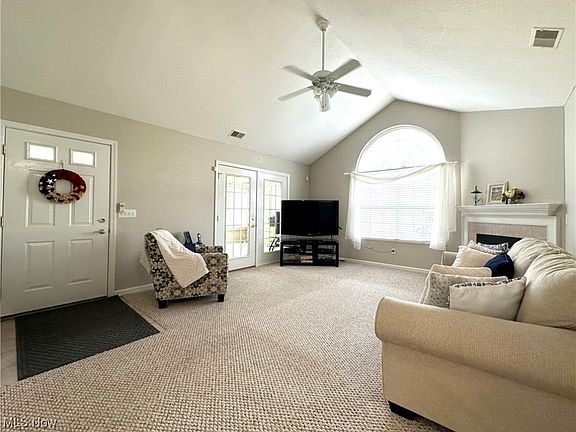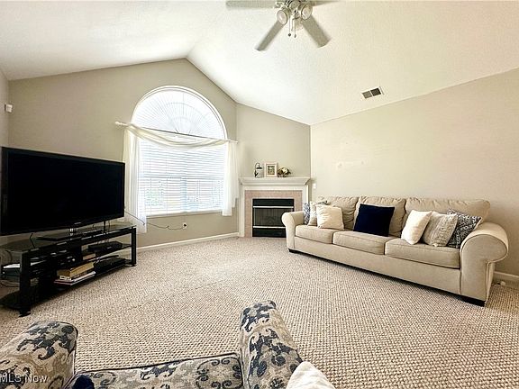 - Description: Great room with ample lighting, ceiling fans and gas fireplace with electric start.,Flooring: Carpet