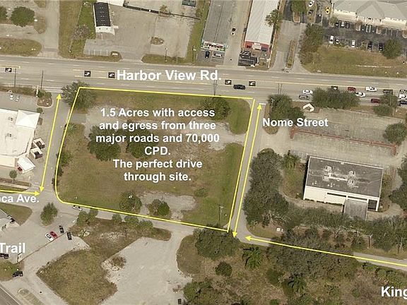 With over 250 feet of frontage on Harborview Rd. and 262 feet of depth this 1.5 acre parcel is ideal. Located adjacent to CVS on US 41 at Harborview, this property has visibility to up to 60,000 cars daily. With rear access from Boca St. the location offers the opportunity for a drive through that can be easily accessed from Harborview, US 41 north & south bound, and Kings Highway west bound. The potential this property offers for your business is truly spectacular. An additional 2 Acre parcel with over 100 feet of frontage on US 41 can be annexed to this piece if your needs call for three acres and exposure to 40,000 to 60,000 cars daily. Access from three signaled intersections. Adjacent to CVS. One the most accessible and busiest street fronts in the county. Perfect size & Location for Commercial General Use with US 41 Tamiami Trail. Just 550 feet away this heavy traffic Intersecting light has a 40,000 car count and Harborview at I-75 has 60,000 car count.