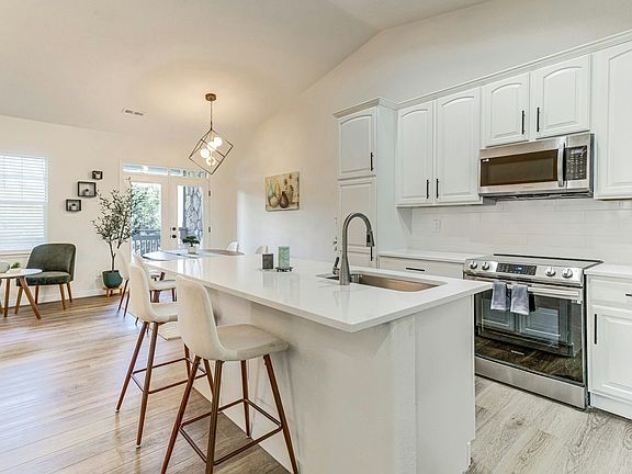 Modern appliancesBreakfast barAmple cabinet spaceOpen floor plan