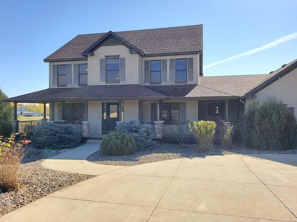 This 9-acre property has a two-story home with parking for 3 vehicles on the main level with 3 parking spaces below! Each of the 3 bedrooms on upper level have their own baths & walk-in closets. Lower level is great for entertaining with a large bar, open family room and game area for entertaining. Walk-out lower level has a 40X20 in-ground heated pool with lots of space to entertain family & friends alike. Lower garage has a concrete drive and is conveniently located near pool - great for pool toy storage, pool supplies or patio furniture in the winter. The stable is 70X32 and has the option to add up to 5 stalls. the stable has an office, water and an unfinished upper level. Upper level would make an awesome man cave.