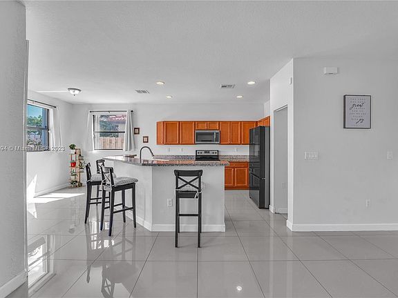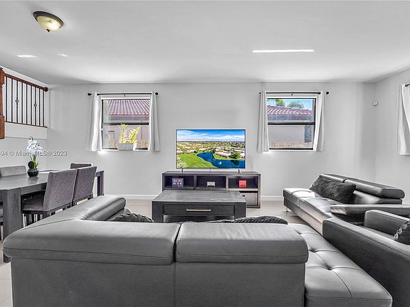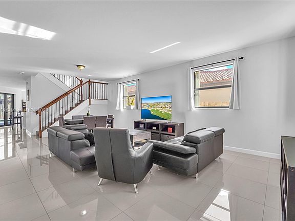Come to this beautiful house and start making memories with your family! On the main level, this home offers a 9-ft ceiling and ceramic floors throughout. A formal living room and spacious family room open to a large kitchen with wood cabinets, granite countertops, and SS appliances. A convenient 1B/1B downstairs and its own two-car garage. The dream patio with turf grass around the entire backyard is perfect. Imagine taking a refreshing dip on a hot day or lounging in the nice pool with family and friends. The staircase with wrought iron baluster railing connects to the second floor featuring 3 spacious bedrooms, and a huge master bedroom with 2 full baths. This is all topped off with accordion shutters on all windows and newly installed impact doors. Call now to schedule a showing!