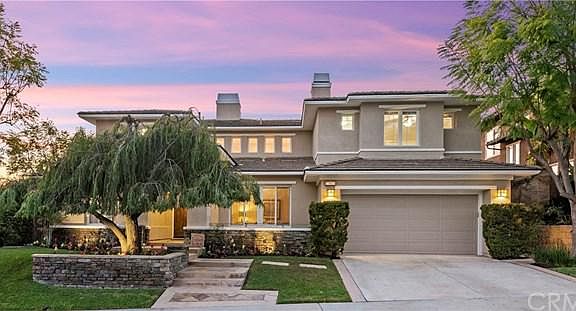 Magnificent home on a corner lot in gate guarded community of Stoneridge. Meticulously maintained inside and outside. This executive style home offers 5 bedrooms, 3.5 baths with over 3400 square feet of luxury. Step down living room with fireplace and bookcases. Large formal dining room with French doors to the side yard. Main floor bedroom and full bath. Light and bright kitchen with center island that opens to the family room that is adjacent to a huge game room. Kitchen with granite counter tops, maple cabinets, newer six burner Viking cook-top, double oven, and refrigerator. Romantic master suite with panoramic city light views on the second floor. Three spacious bedrooms and a full bath on the second floor. Laundry room is located on the second floor with a large sink. Freshly painted inside and outside. Private backyard with built-in BBQ island. Large front porch with fountain. Neighbor hood park is located directly across form the home. Two car garage with freshly painted epoxy floors and storage racks. Fenced-in and cement floored dog run area with two drains and with dog access to the garage. Low Mission Viejo taxes and no Mello Roos. Member of Lake Mission Viejo with swimming area, picnic and BBQ area, boating, sport courts and club house. A beautiful place to call home.