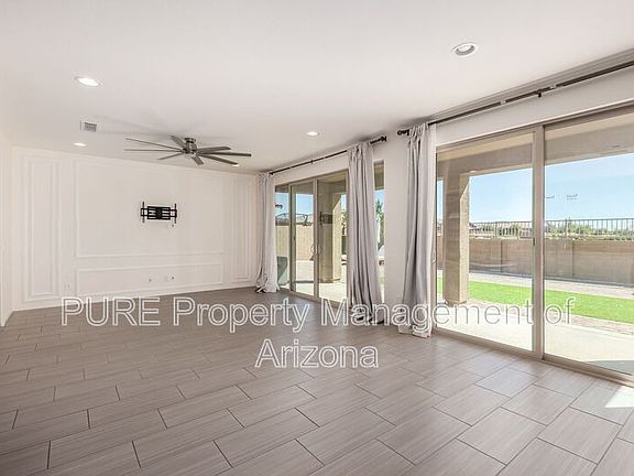 Step into your dream home in the vibrant Meridian Community of Queen Creek! Double sliding glass doors invite you into a light-filled open living space, where the stunning all-white L-shaped kitchen gleams with stainless steel appliances and a spacious island with bar seatingperfect for entertaining. Enjoy four bright, airy bedrooms and three pristine bathrooms designed for comfort and style. Step outside to a covered patio and expansive paver yard with a lush grassy area and chic outdoor furniture, all overlooking the community greenbelt. With a two-car garage and resort-style surroundings, this home truly has it allmodern, elegant, and ready for you!