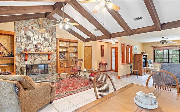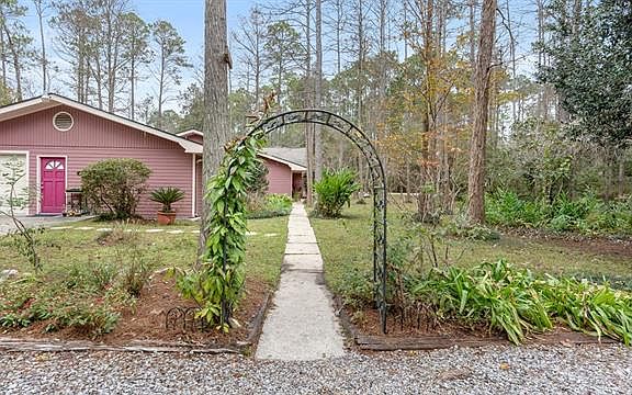 Country living on an acre in Mandeville School district! Gardener's Delight! Cozy and charming home surrounded by nature! Wood and stone and lots of natural light. Quiet neighborhood. Open floorplan is excellent for entertaining. Plenty of storage. Vaulted ceilings in the great room. Huge owner's suite with large tub and separate shower. Roof was replaced by current owner. Garage is currently a workshop but can be reverted. Huge fenced yard!