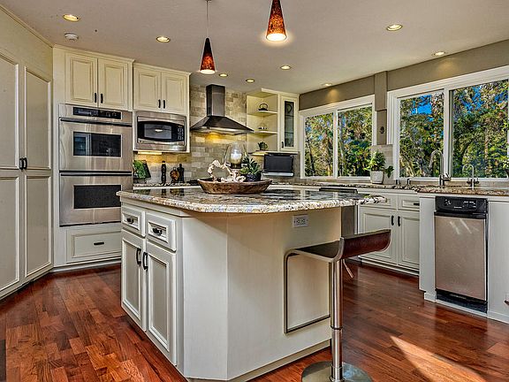 Sellers will entertain offers between $1,197,000 and $1,250,000. Magnificent 4 bedroom custom estate nestled in private wooded setting will enchant you!Set back on a cul de sac w/ 1.2 acres,almost every inch of this stunning home has been remodeled including 2 tier new deck which overlooks a jacuzzi,year round stream,bridge,gazebo & raised garden beds. Gorgeous gourmet kitchen, formal dining room, massive master w/ fireplace & luxury bath, & studio downstairs used as a yoga studio complete w/ mirrored walls &fireplace. Can be conv. to granny flat!..