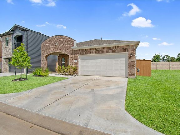 Gorgeous one story home in the Gated Solstice At Harmony. Walk up to a spacious covered porch leading to the home as you enter an open concept layout with family room, kitchen and dining combination. The large master bedroom is very spacious with plenty of windows. Large master bedroom with double vanity bathroom, large soaking tub and separate shower. Second bedroom with full bathroom and 2 car garage. Neutral color tones throughout with tile and carpet flooring. Granite countertops at kitchen + large breakfast bar area and tons of cabinet/counter space. This gated community is walking distance to H-E-B with quick access to Grand Parkway, The Woodlands and Hardy Toll Road!