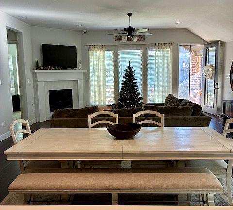 This home features four bedrooms, three full baths, and a private office, perfect for remote work or guests. The open-concept design showcases a bright and airy living area, large kitchen island, and generous dining space ideal for entertaining or everyday family life.