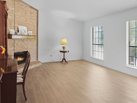 Step into this charming home with storybook curb appeal. This darling 3-bedroom, 2 bath home blends classic charm with modern convenience. Nestled in a friendly neighborhood just minutes from shopping, dining and everyday essentials, this gingerbread-style home features eye catching curb appeal with an inviting interior. Enjoy the spacious living area with a beautiful floor to ceiling brick fireplace, an eat-in kitchen with quartz countertops and comfortable bedrooms, perfect for families or first-time homebuyers. The fully fenced in backyard offers a great place to enjoy the kids, pets or weekend gatherings. The front yard has a peach tree and a pecan tree, perfect for baking those pies or making cobbler. There is so much to love about this home so schedule your appointment today. No survey, buyer will need to purchase a new one if needed. All information deemed reliable but not guaranteed. Buyer to verify all information.