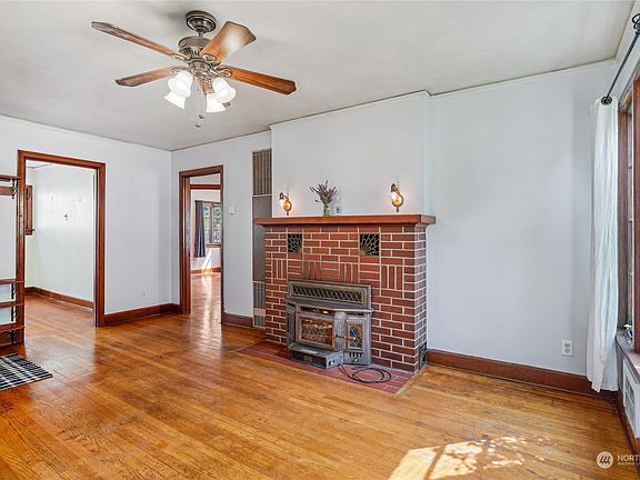 This 2-bedroom home is ideally located on a picturesque tree-lined street in historic North Everett. The well-maintained and updated property features gleaming wood floors, elegant molding, and an open living room with a brick fireplace and large windows that fill the space with natural light. The bright kitchen, complete with a cozy nook, oak cabinets, and ample counter space, is perfect for daily living. Outside, enjoy a covered deck, fenced yard, and a convenient outbuilding, with gated off-street alley parking. Just minutes from schools, shopping, and I-5, this move-in-ready home is a must-see!