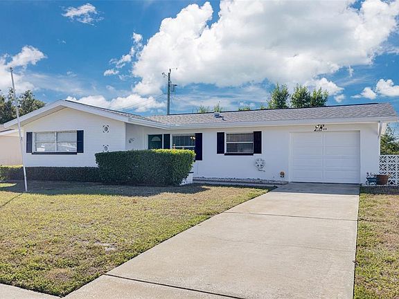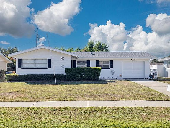 Just SIX MILES from world-renowned CLEARWATER BEACH, this CLASSIC FLORIDA home offers TWO SPACIOUS BEDROOMS and a nicely UPDATED KITCHEN with a brand new microwave, built-in wall oven, and a window over the stainless double sink! With a freshly-painted exterior, this lovely home features a separate DINING ROOM, an EXPANSIVE LIVING ROOM with sliders to the FLORIDA ROOM, and newer LAMINATE FLOORS in the bedrooms and living room! The home is BLOCK CONSTRUCTION and is located in a low-risk X-FLOOD ZONE! The ONE-CAR GARAGE features a BATHROOM with a shower for those who like to work in the garage or garden! LUSH LANDSCAPING with sprinkler system! LONG DRIVEWAY for two cars! NEWER INFRASTRUCTURE translates to SAVINGS: Roof - 2018! AC - 2020! Water Heater - BRAND NEW - 2025! Down the road from ST. PETE COLLEGE, less than a mile to Publix, half a mile to BAYCARE BALL PARK where the Threshers host SPRING TRAINING, 20 minutes to Tampa International and DOWNTOWN DUNEDIN, and 19 miles to the ST. PETE PIER! Around the corner from US 19 but far enough away for PEACE AND QUIET in this tranquil neighborhood! Some pictures have been virtually staged.
