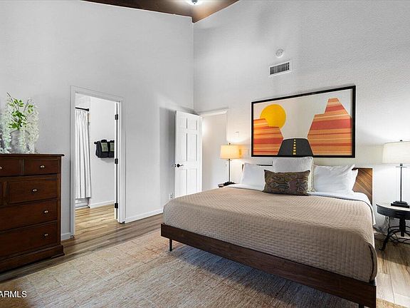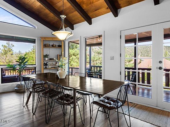Sedona's best restaurants, grocery stores, & hiking trails. See More... The upper floor features a kitchen with granite countertops and effortless flow between the kitchen, dining, and living room to create a great, connected entertaining space. Snap your photo next to a custom, floor to ceiling mural of Sedona's most iconic rock formation - Cathedral Rock. This entire portion of the home is encased with a large wrap-around deck that grants you ample views and supports outdoor dining. This home truly makes outdoor/indoor living seamless. The primary bedroom is exceptionally spacious and features soaring T&G ceilings and an en-suite bathroom. Guest bedroom 2 enjoys abundant light from windows on all sides, and has a darling reading nook tucked under a large picture window. A half bath adjacent to the foyer serves guest bedroom 2.
