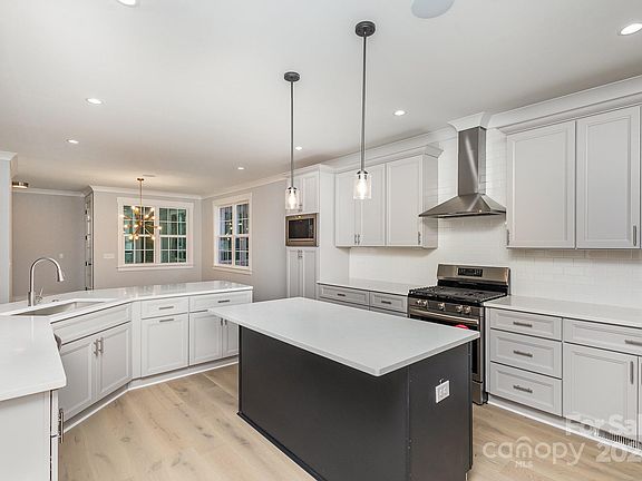 The heart of the home is a stunning kitchen with soft gray cabinetry, a bold dark island, quartz countertops, and high-end stainless steel appliances. Perfect for gatherings, it’s designed for cooking, connecting, and creating memories.
