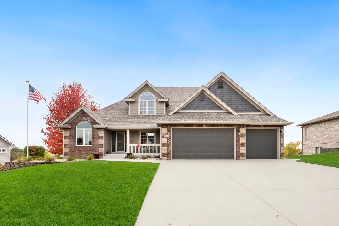 Experience sweeping golf course and river bottom views from this spacious Van Dam 1.5-story in Deer Run West. The main level includes a two-story great room with floor-to-ceiling windows, dedicated office, and a well-appointed kitchen featuring quartz countertops, stone backsplash, farmhouse sink, and newer appliances, with LVP flooring throughout much of ...