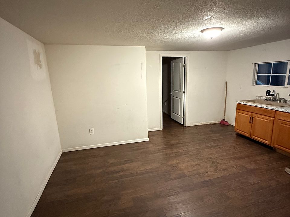 Big space for a living room and kitchen with a fridge and stove kitchen cabinets nice brand new restroom inside the room full size and a bedroomnd bills included in the price