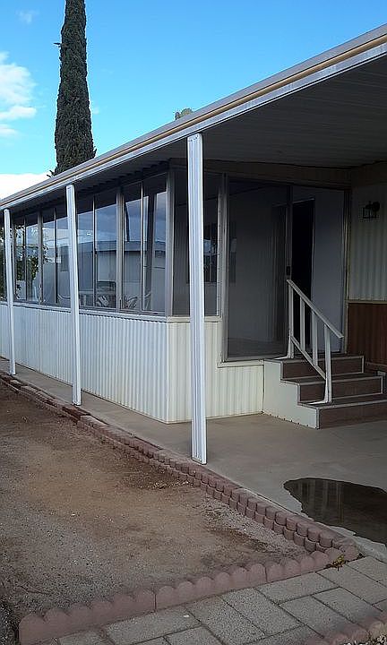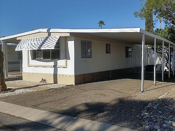 2 Bedroom, 1 bath mobile home in gated 55+ community. 1979 Skyline home. Fully renovated and painted inside and outside, Move-in Ready. Clean and Bright and all the upgrades have been done. New hot water heater, new faucets, upgraded plumbing, new light fixtures throughout, newer evap cooler, new carpet in Master and Living Room, newer stove/oven, freshly coated Cool-Seal roof, new window treatments. Many extras have been done to this home. A MUST SEE. 2 car carport, Large Arizona Room adds to your living space. Shed with workbench and electricity and a patio area for grilling or enjoying your yard. Call MARK for a viewing at 520-409-8950