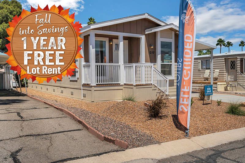 This charming 1040 square foot manufactured home in Bella Capri features 2 bedrooms, 2 bathrooms, and a cozy layout perfect for comfortable living. This new home boasts a spacious living room, dining room, fully-equipped kitchen with stainless steel appliances, a master bedroom with ensuite bathroom, a bonus room that can serve as a home office or guest room, and a convenient laundry room. The exterior of the home offers a carport, shed for extra storage, a patio for outdoor entertaining, a covered porch for enjoying the Arizona weather, and durable Cemplank/Smart Panel siding for low maintenance living.