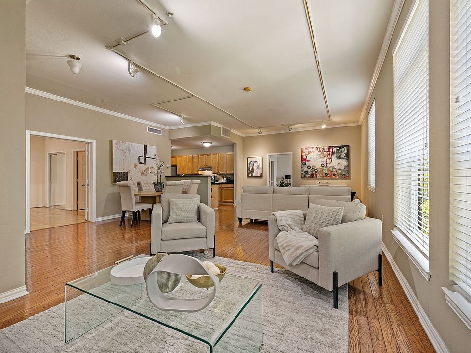 Experience the perfect blend of style, comfort, and convenience in this beautifully maintained 2 bedroom 2 bath residence at The Belvedere, a boutique mid-rise with full-service amenities including a 24-hour concierge, resort-style lap pool, fitness center, and outdoor grilling area. This condo includes two deeded parking spaces, one with an exclusive EV charger, in a secure underground garage. Located in the sought-after State-Thomas Historic District, enjoy walking to Klyde Warren Park, the Arts District, local coffee shops and dining, a quick 2-blocks to Whole Foods, and local hot spots just blocks away. Inside, the spacious single-level floor plan showcases rich hardwood floors, a sleek kitchen with stainless steel appliances and abundant cabinetry, and a split-bedroom layout for ideal privacy. The primary suite features a generous walk-in closet and ensuite bath, while the second bedroom offers French doors opening to custom built-ins with a desk—perfect for a home office or combination guest room plus office. Exclusive to this unit is a private 77 sq. ft. climate-controlled storage unit. Full-size washer and dryer, and refrigerator are included. This is a rare opportunity to own a full-service condo in one of Uptown’s most connected and walkable neighborhoods. **Property is Back on Market due to Buyer's Contingency Expiration