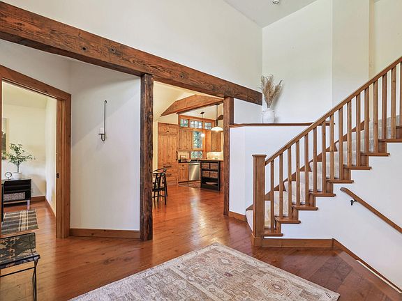 Welcome to this hidden gem in Forest Lake! Tucked away at the end of a quiet cul-de-sac, this home offers peaceful, wooded surroundings. Step inside and be greeted by vaulted ceilings, custom touches, and reclaimed wide plank floors with rustic wooden beams. The gourmet kitchen shines with knotty alder cabinets, soapstone countertops, a farmhouse sink, newly installed whole home water filtration system, and commercial-grade appliances.
