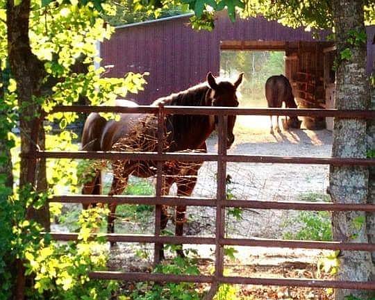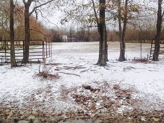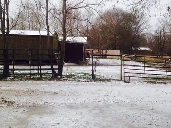6 stall barn 16x20 shop Wooden covered porch Small arena Steel carport Metal 12x10 shed New water well and pump Installed has line Fenced and cross fenced Two beautiful big several hundred year old oak trees at front of property Has cleared land with some shade trees