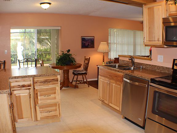 In the middle of Pine Lakes is a sought after W Bradenton single family home on a corner lot with community sidewalks. As you enter this spacious split floor plan through the newly screened front porch, you will feel welcomed and invited. It includes 3 bedrooms, 2 baths, office, family room, formal living room, dining room, entirely brand new kitchen with all new stainless steel appliances and hickory cabinets, and a laundry room with sink in over 2000 square feet of living space. The large master bedroom suite separates itself for complete privacy and offers sliding glass doors which opens up to your own private pool in a newly screened pool cage. The home has been lovingly maintained and features whirlpool tub in the guest bathroom, a new 18-Seer A/C-Heater and all new duct work, new floorings, and has been freshly painted inside and out. The irrigation system is fed by an in-ground deep well with newer pump, and a new privacy fence has been installed. The oversized yard has partial new lines and sprinkler heads. Also, included are all hurricane shutters and a hurricane reinforced double garage door. This home is MOVE IN CONDITION! Pine Lakes is a short commute to great shopping, dining, movies, medical facilities and our beautiful beaches.