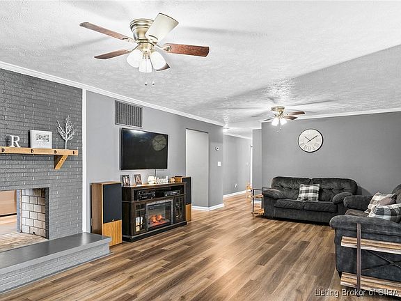 Welcome to this updated 4-bedroom, 2-bath home located in a highly desirable hilltop neighborhood in Madison, IN. With 2184 square feet of living space, this home is perfect for anyone seeking a spacious and modern living environment. The heart of the home is the updated kitchen featuring granite countertops, ample cabinets and a layout that flows seamlessly into two expansive living rooms-ideal for hosting gatherings or family time. Recent upgrades include flooring, contemporary lighting fixtures, fresh exterior paint, gutters, garage door, and updated windows that enhance energy efficiency. The living room features a cozy double sided fireplace, shared with the dining area, creating a warm ambiance. A second fireplace in the family room is ready for a gas hookup.