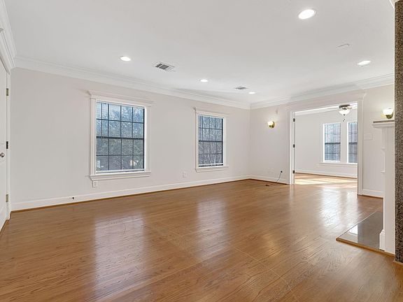 Hardwood flooringGranite countertopsCrown moldingGe appliances in kitchen