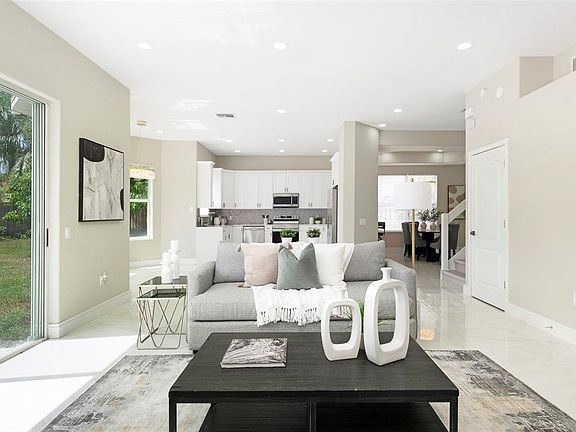 Welcome to Your Florida Dream Home! This completely remodeled 5-bedroom, 3-bath gem has been upgraded from top to bottom and is move-in ready. Freshly painted and featuring a brand-new 2025 AC unit, it is located in the highly sought-after Erin Arbor community of Bloomingdale East, renowned for its top-rated schools and strong sense of community. Inside, enjoy soaring ceilings, gleaming tile floors throughout the first level, and abundant natural light. A striking modern chandelier highlights the staircase, while the kitchen serves as the heart of the home—offering new cabinets, quartz countertops, stainless steel appliances, and highchair seating space—all overlooking the open living and dining area. Upstairs, new plank laminate flooring adds warmth and style. Each of the three bathrooms has been recently renovated with contemporary finishes, including LED mirrors, quartz counters, sleek cabinets, designer tile showers, and modern toilets. The primary suite features a spa-like retreat with a massive shower, luxurious soaking tub, frameless glass door, double vanity, and two walk-in closets—one accented with a chic barn door. The oversized backyard is fully enclosed with complemented by tropical fruit trees for a serene outdoor escape. Don’t miss your chance to own this one-of-a-kind Florida dream home!