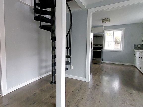 Laminate floorsFenced backyardCovered front porchLaundry roomSpiral staircaseSmall back deck