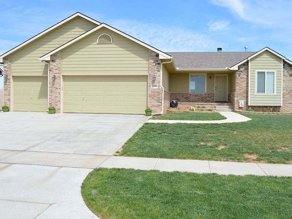 Beautiful open floor plan with 5 bedrooms and 3 bathrooms. Master bedroom has an on suite bathroom with a large corner Jacuzzi tub. Kitchen has lots of cabinet space with a walk-in pantry. The home features a 3 car garage. Also, located in the desirable Goddard School District. The basement is finished and already plumbed for a future wet bar.