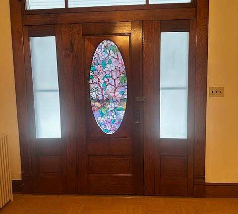 Very spacious TWO BEDROOM/1 bath apartment located on the first floor of a stately farmhouse on Littlestown Pike. Upon entering through the front door there is a large foyer area which flows into a large den area with rich original hardwood sliding doors. There is a double closet in this room and solid hardwood doors with original doorknobs indicative of the era that this home was built. The bedroom is a nice size and has a large double closet also. The second bedroom is also a good size and has beautiful double solid wood doors that open into that room and there is also a bedroom door between the two bedrooms. There is a large dining room area that is connected to the kitchen area. It is a galley style kitchen with lots of original hardwood cabinetry. Kitchen includes a range, refrigerator and range hood. The entire apartment has beautiful wooden parque flooring. The apartment is the entire first floor with a large wrap around porch. There are lots of large windows allowing streams of sunlight to come through from the North, South, East and West sides. The bathroom has a linen closet and full tub and shower with glass sliding doors. There is a small amount of storage in the basement and a washer and dryer for this unit. The house is heated with oil heat and the oil heat is included in the rental price. The tenant pays for the BGE only. This is well water and septic . Trash is included.
