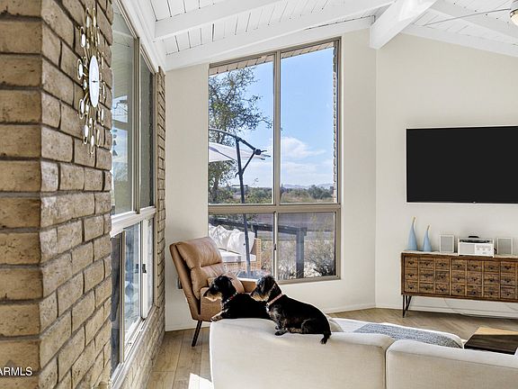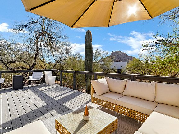 Experience Mid-Century Modern living on a 22,000 sq. ft. lot with breathtaking Papago Buttes views. This 4-bed, 2-bath home features a vaulted beamed ceiling, a striking fireplace, and a newly remodeled kitchen with custom cabinets and top-tier Café appliances. Enjoy seamless indoor-outdoor living with a 325 sq. ft. deck, a new swim spa, and a renovated patio with misters. A separate office/bedroom with a private entrance offers flexibility. Located in Arcadia, minutes from Desert Botanical Gardens, Papago Park, and Old Town Scottsdale. NO HOA! Don't miss this rare opportunity!