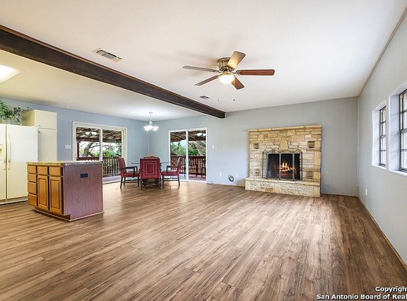 Adorable Rock home sitting on a very large lot in Spring Branch. Home features an open floor plan with a beautiful fireplace and wrap around deck. Absolutely Move in condition! Home just renovated with white painted cabinets in kitchen, new carpeting in both bedrooms and paint throughout the home. New Air conditioning unit. All done within the last 3 months. The only new carpeting in this home is in the bedrooms. The remaining floors are wood laminate.