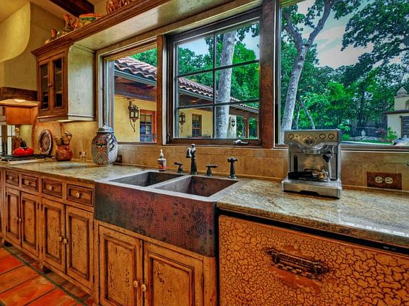 Central Austin Hacienda on an estate-sized lot! Charming finishes include antique doors, wood windows, copper sink, custom cabinets, beautiful wood beams, and artistic tile. Built to entertain inside and out. The covered patio and saltwater pool invite you to enjoy the lush landscaping and expansive, private back yard. Coveted neighborhood with easy access to downtown, Zilker Park and many other Austin treasures.
