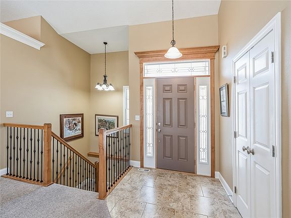 Better than new with many updates, this gorgeous, 4BR 5BA walkout ranch home is in a highly desirable SW Ankeny neighborhood close to parks, schools, bike trails, & shopping. Stepping into the foyer, you are greeted with a light, bright interior and soaring vaulted ceiling. The massive great room leads to the impressive kitchen with quartz countertops, SS appliances, pantry, & gorgeous maple cabinetry. The main level also features two more huge BRs with large closets, huge laundry room, a full bath, & a toilet room. From the dining room, step out onto the covered deck where you can enjoy the fully-fenced, irrigated yard with beautiful mature landscaping providing privacy when all is in bloom. This custom-built home was renovated to feature an additional master suite on the lower level. Both masters have gorgeous walk-in tiled showers, dual vanities, & huge walk-in closets. The lower-level master includes an additional 150-200 sq ft that is not on the assessor site. Heading to the lower level you will also find a family room with a large bar, a theatre room w/surround sound & a cozy direct vent heater, & an office. Spray foam insulation, solid wood doors, solid wood closet interiors, matching maple trim and cabinetry throughout, and crown molding are just some of the finishing touches expected from a quality builder. Home also is wired for security. All information obtained from Seller and public records. HSA home warranty included