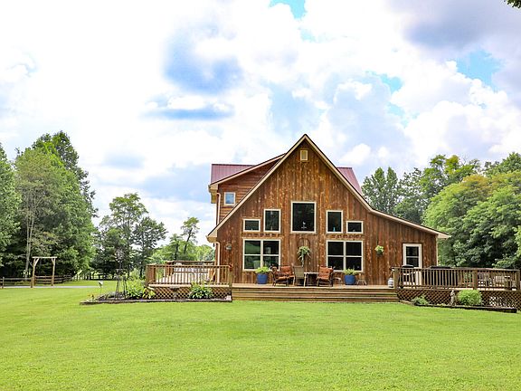 SHOWN BY APPOINTMENT ONLY, PLEASE be respectful of the sellers wishes and do NOT drive back to the home without a Realtor ! Located at 2306 Snake Ridge Road in Liberty KY is where you will find this 24 +/- acre hobby farm for sale. If you have been looking for seclusion, and a place to raise your family and become a little more self-sufficient, raise a garden and have a few horses or cattle and a few chickens, then here is your dream farm. Driving in from the road, your private drive is down a lovely level wooded lane. This cedar sided home was built in 2012, contains approx. 2,852 SF of living space and has 3 bedrooms and 3 baths. There is a bedroom and bath on each level of the home as well as 2 full kitchens and 2 laundry rooms. There is a wrap around deck on 2 sides and a full length screened in porch on another side. There is also a good-sized pole barn with a poured concrete floor, perfect for parking your vehicles, tractor, or farm toys. You could always close it in and have a nice 3 bay large garage.. Upon entering the home on the main level, you are greeted by a spacious open concept living room, dining area and kitchen with vaulted ceilings open to the loft area where you will find a nice area set apart for an office as well as a large master bedroom suite with a good-sized walk-in closet and ensuite bath with shower and double vanity & even its own private deck area. The kitchen has tile countertops and custom-made hardwood cabinets that have the distressed farmhouse look. These same cabinets can be found in every bath in the home as well as the 2nd kitchen in the basement. Also on the main level is a nice sized bedroom with French doors that open to the screened in porch that stretches the entire length of the home. That porch has beautiful views and ceiling fans making it a great place to sit back and relax. Laundry is found at the end of the hall, as you come in from the rear deck, making it a great location for the mud room. The living room has tons of natural light with lots of windows with beautiful views to watch the deer, fox and turkey stroll though. It's just like living in your own private national park.