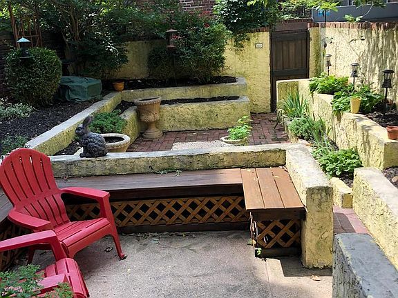 Perfect Rittenhouse Square location. This huge, beautiful first floor 1 bedroom plus1 den property has a stunning outdoor space. Elegantly proportioned rooms with high ceilings, crown molding, and hardwood floors throughout. Brand new stainless steel appliances installed in kitchen. Gas fireplace in living room, dining nook, powder room and access to garden patio off kitchen make it a great space for entertaining. The private outdoor space with built in seating and table on upper level, and cafe seating on lower level offers a lovely sanctuary in the city and is perfect for barbecues. Rear bedroom also has access to yard, great for morning coffee! Full bath off master recently updated. Set up your office/library in the full size den with decorative fireplace. Perfect home close to all the best amenities in Center City! Plus Free Laundry in the basement along with large private storage unit just for your apartment.