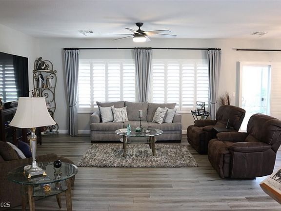 Experience refined living in this beautifully renovated Lincoln model nestled in the prestigious gated Pinnacle community of Sun City Anthem. This elegant 2-bedroom, 2-bath plus den residence sits on a peaceful interior street near the Community Center. The exterior showcases fresh paint, a custom glass entry gate, and an east-facing patio with paver decking, mountain views, mature trees, mesh fencing, and ambient landscape lighting. Inside, sophistication abounds with new designer paint, custom plantation shutters, luxury vinyl plank flooring, and stylish tile in the baths and laundry. The gourmet kitchen features upgraded cabinetry, quartz countertops, new stainless steel appliances, a designer sink, and a large pantry. Bathrooms boast quartz vanities, new fixtures, and a frameless glass shower. The primary suite offers yard access and an Elfa custom closet. Upgrades include a 2021 HVAC, EV hookup, tankless water heater, and whole-home water filtration and softener system.