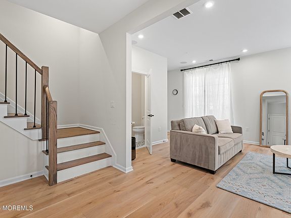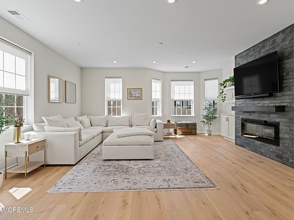 Welcome to the desirable Heritage at Middletown Townhomes. This fabulous End Unit features an abundance of natural light overlooking a private treed setting. Perfectly appointed with thousands of dollars in builder upgrades makes this unit a rare find! The engineered wood floors run through all three levels and staircases. Discover the ease of entertaining on the second level, where the Living Room features an electric fireplace in a custom tile surround, plus built in cabinetry with quartz counters and shelving flanking both sides. The modern elegance of the kitchen design boasts upgraded cabinetry and appliance package, quartz counters, pendant lighting and brushed gold cabinet handles. A whole house Audio and Surround Sound system is such a delight! The primary suite is nicely appointed with custom ceiling fan tucked within the tray ceiling. Gleaming chrome fixtures, a frameless shower door, custom tile and a linen closed are within this well sized primary bathroom. Exterior access is via the kitchen sliding glass door to a deck or the first level sliders to a classic brick paver patio. Enjoy the clubhouse which is home to a gourmet kitchen, media center and fitness center. All of this convenience located close to public transportation, major highways, NJ Transit, Ferry Service to NYC and close to local Jersey Shore Beaches and Parks. Don't miss your opportunity to own this nearly new Townhome!